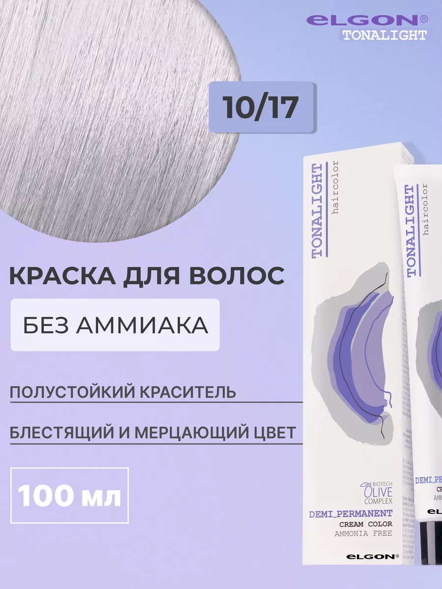 | Полное наименование товара | Краска для волос без аммиака тонирующая профессиональная Elgon Tonalight 10/17 Светлый блонд Пепельно-перламутровый, 100 мл |