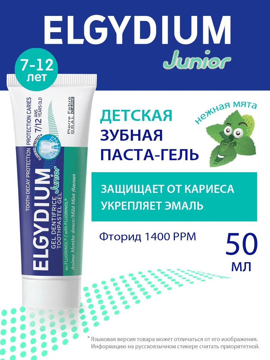 ЭЛЬГИДИУМ ЗАЩИТА ОТ КАРИЕСА ДЖУНИОР с мягким вкусом мяты защищает и укрепляет постоянные зубы у детей в возрасте от 7 до 12 лет благодаря фтору, количество которого адаптировано к потребностям данной возрастной группы (1400 ppm ионов фтора)*. 96% ингредиентов натурального происхождения.