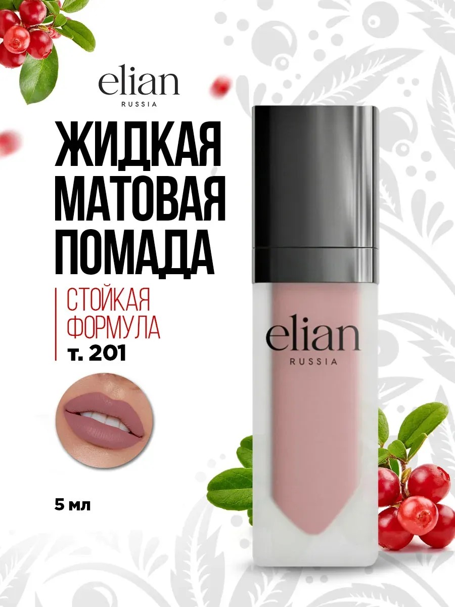 Жидкая матовая помада для губ Elian Russia Superior Matte Liquid Lipstick, тон 201 Noblesse / Благородство / пыльно-розовый. Объём: 5мл.