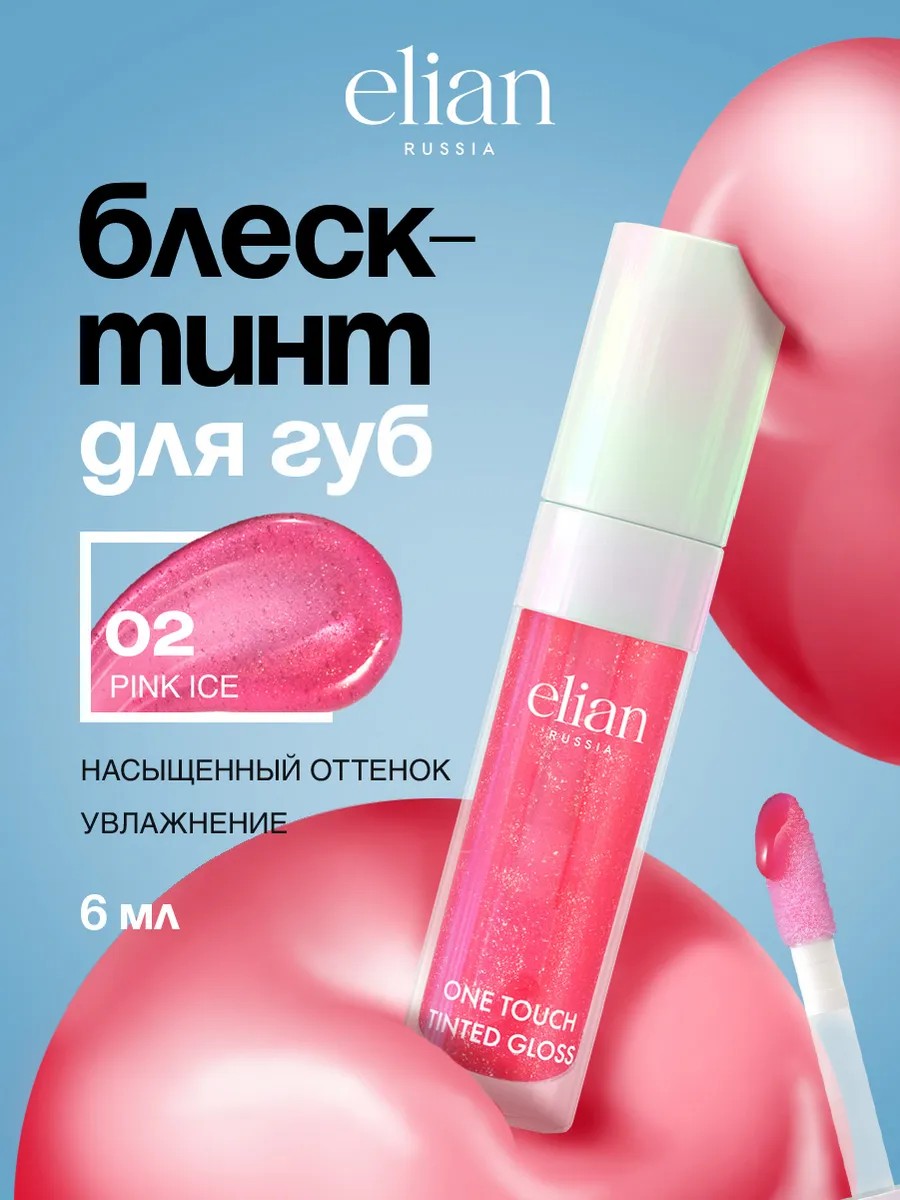 Elian Russia One Touch Tinted Gloss, shade 02 Pink Ice / transparent pink with glitter. Volume: 6 ml.
