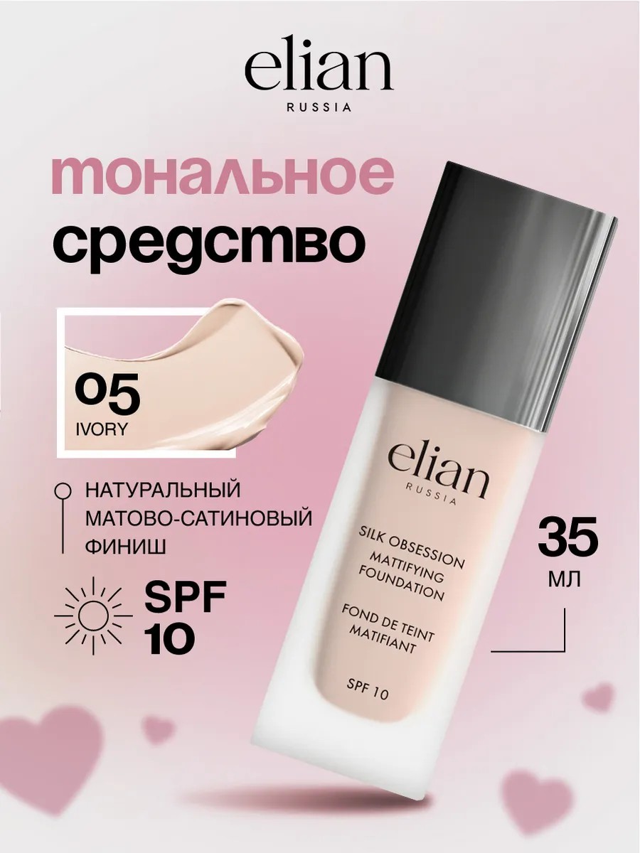 Elian Russia Тональное средство Silk Obsession Foundation, тон 05 Ivory / Слоновая кость / Светло бежевый. Объем: 35мл.