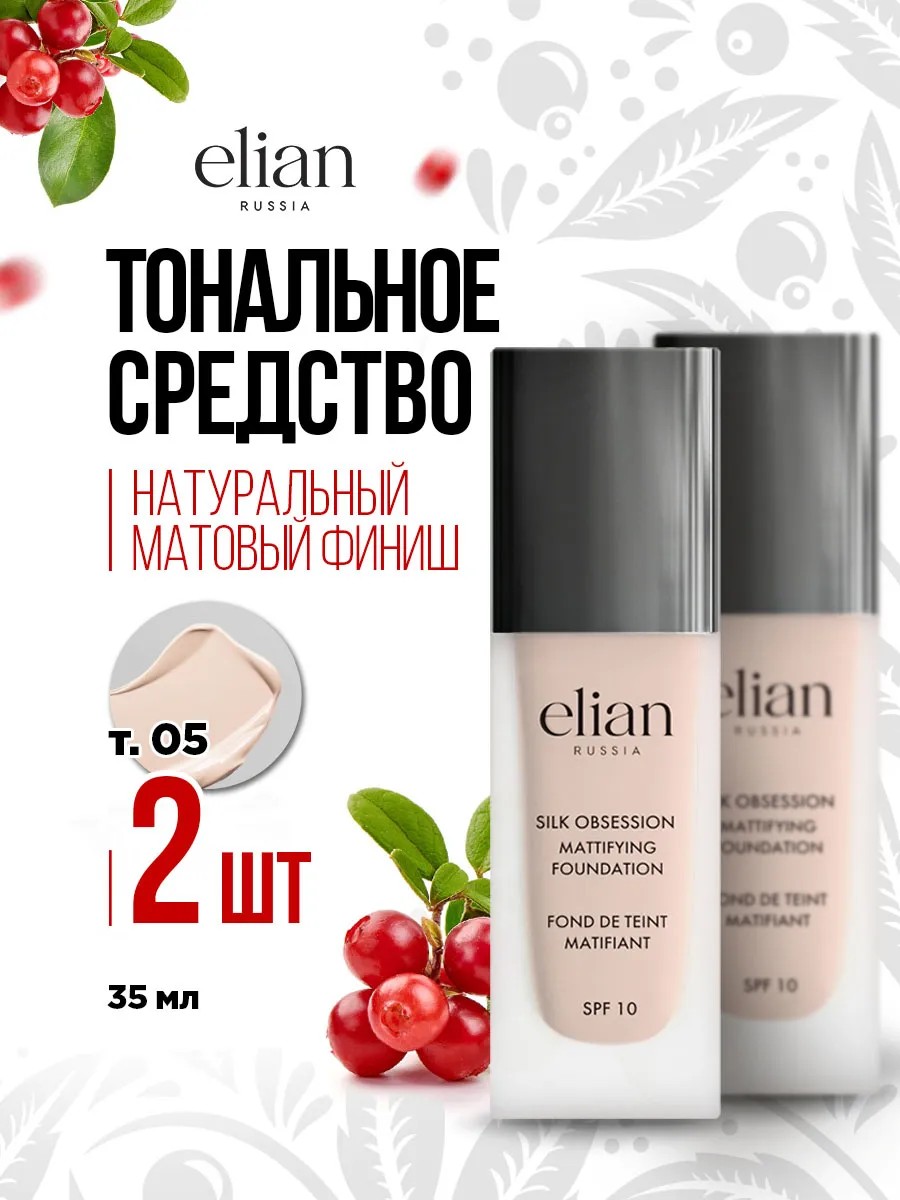 ELIAN RUSSIA Тональный крем для лица матирующий SPF 10, тон 05 Ivory, 2шт