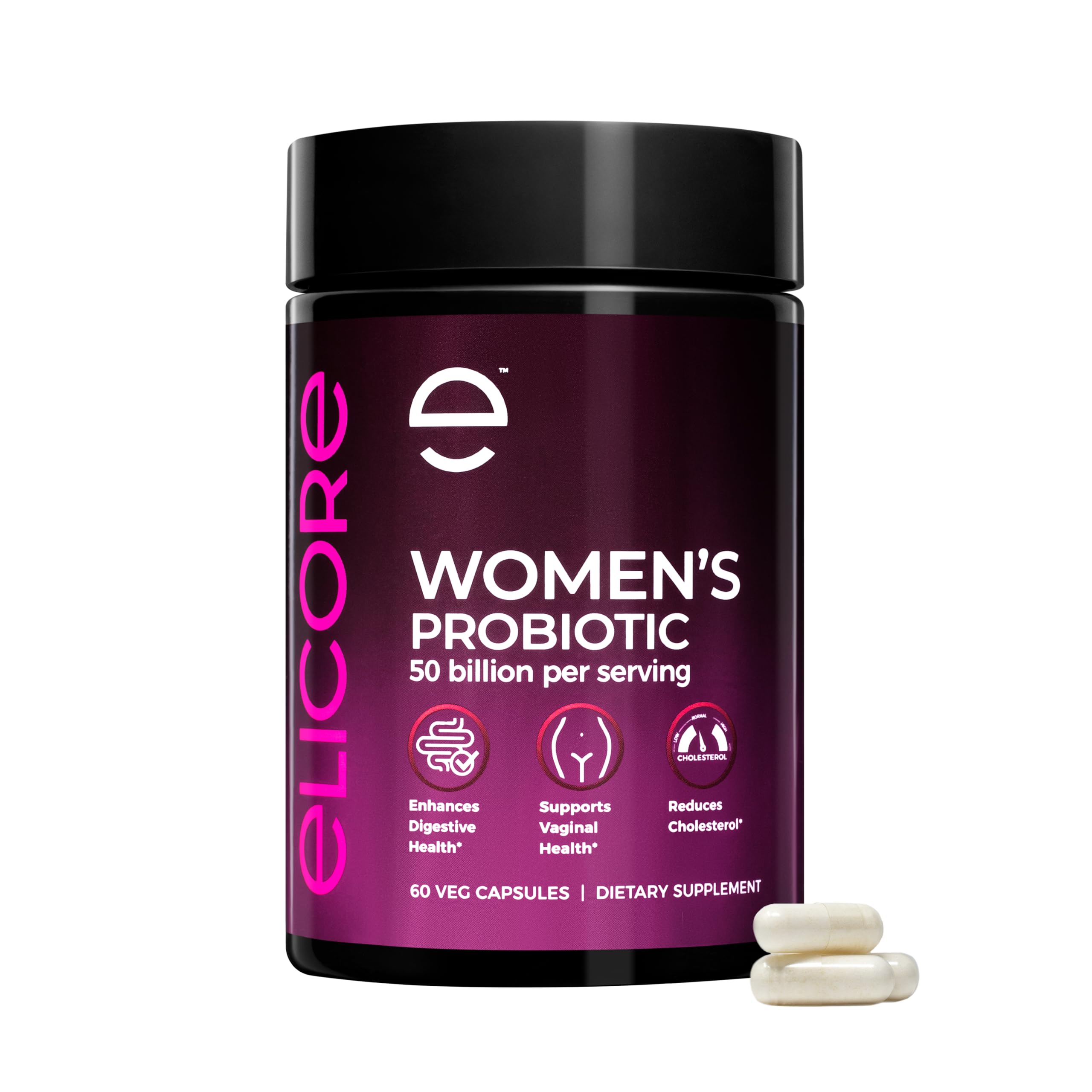 ELICORE Probiotics for Women 50 Billion CFU - Lactobacillus for Digestive & Vaginal Health - Non-GMO Gluten-Free Blend with MAKTREK Bi-Pass Technology - Vaginal Probiotics - 60 Veg Capsules