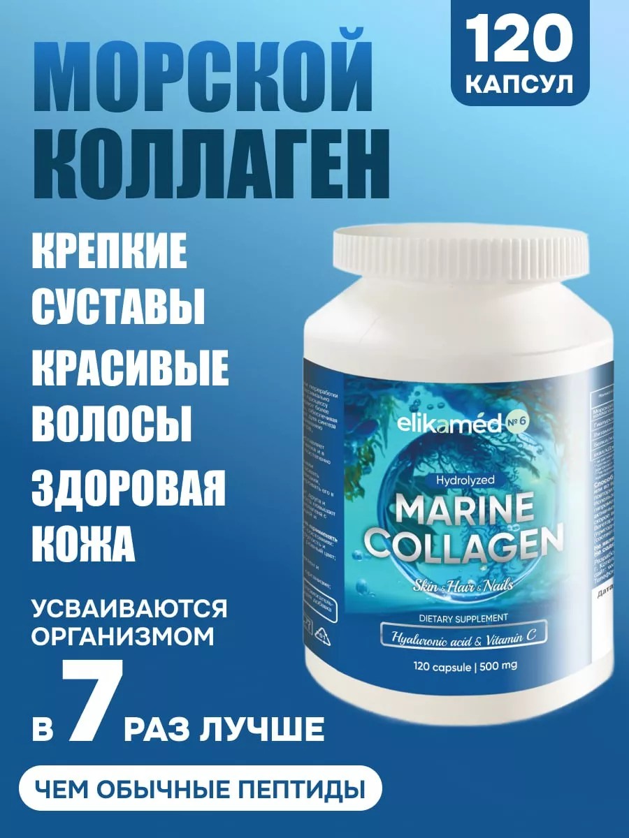 Elikamed Коллаген морской гиалуроновая кислота и витамин С 120 капсул