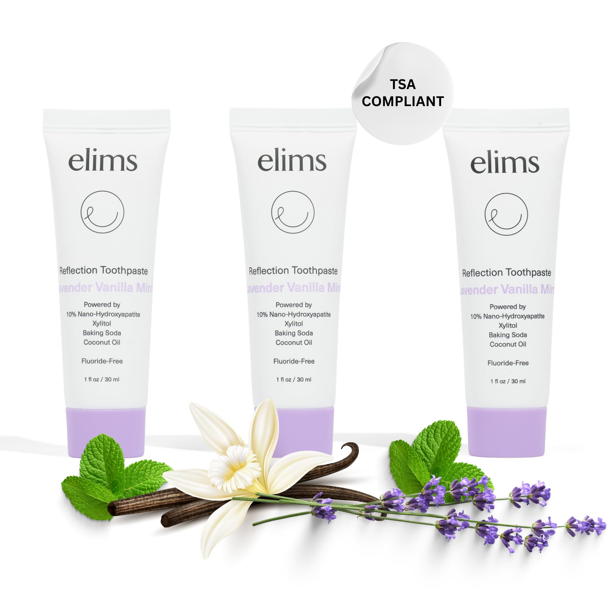 ELIMS Travel Size Nano Hydroxyapatite Toothpaste Fluoride Free (3-Pack) - Xylitol Remineralizing Toothpaste for Whitening Sensitive Teeth - Lavender Vanilla Mint Toothpaste for Adults & Kids 1oz