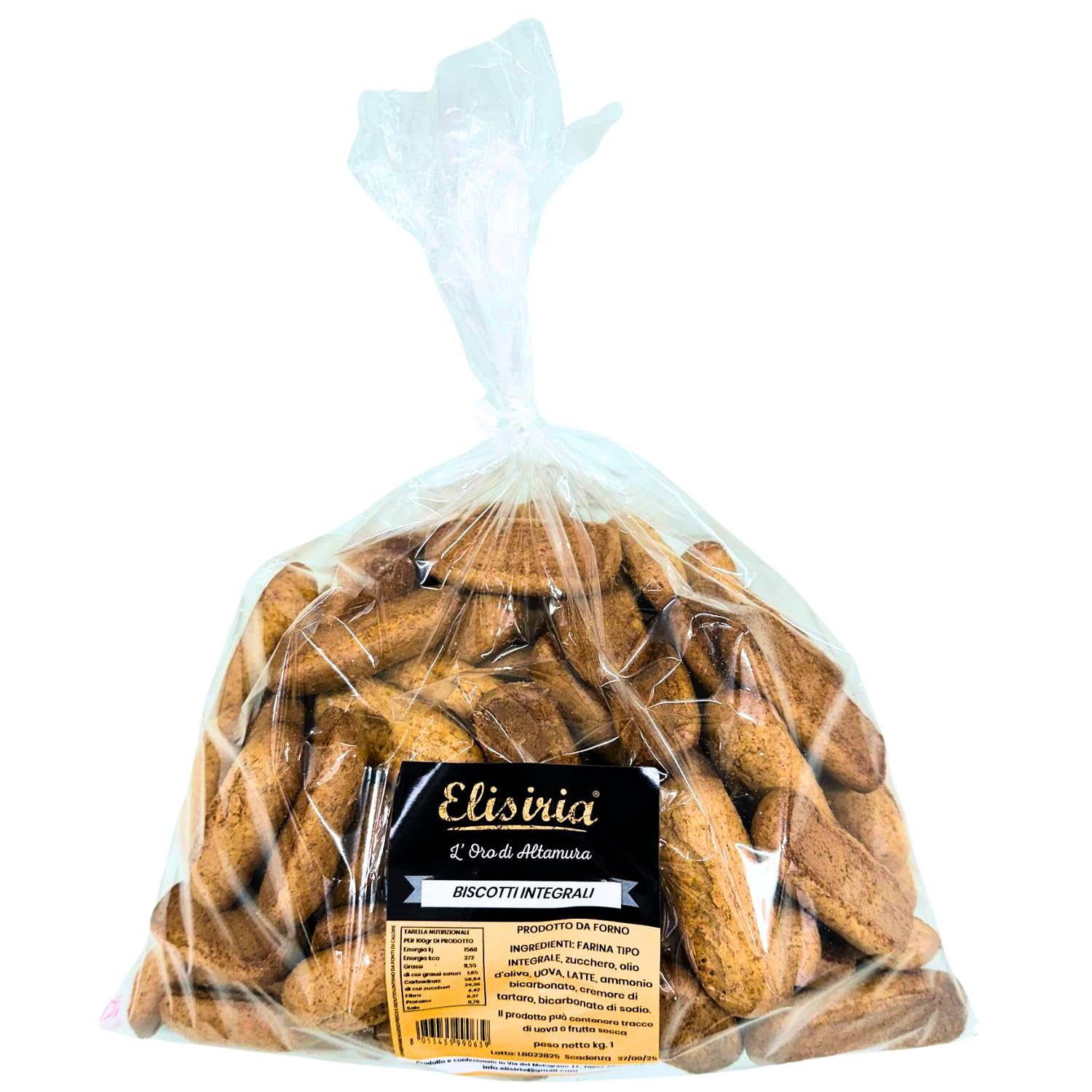 Elisiria Biscuits artisanaux intégraux, Biscuits isecchi pour petit-déjeuner et goûter, collations sucrées, lot de 1 kg, fabriqués en Italie
