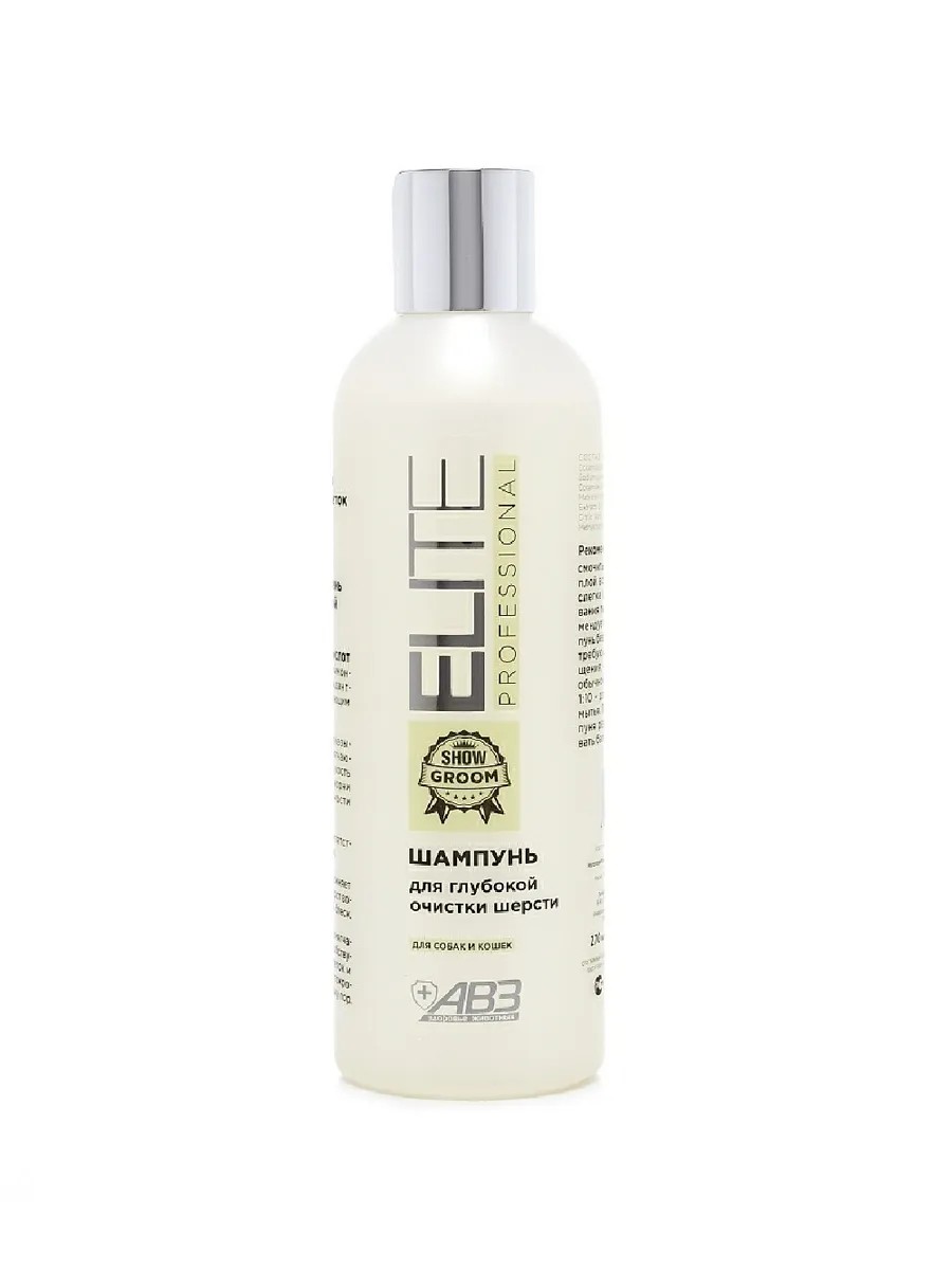 Elite Professional, Deep Cleansing Shampoo for Dogs and Cats, 270 ml. Elite Professional is a line of cosmetics for professional grooming of your pet's coat at home! Elite is a trademark of the Russian company Agrovetzashchita, which has been developing and producing medicinal products for animals since 1992. Under the Elite brand, professional cosmetics are created for grooming your pet at home. Elite cosmetics use highly effective active ingredients with proven properties and the maximum amount of natural ingredients obtained from the best raw material producers in Europe, Japan, and America. The first cosmetics without ingredients of animal origin, with a minimum content of synthetic components!