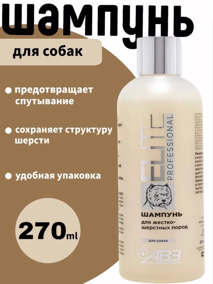| Полное наименование товара | Elite Professional Шампунь для собак жесткошерстных пород 270мл |