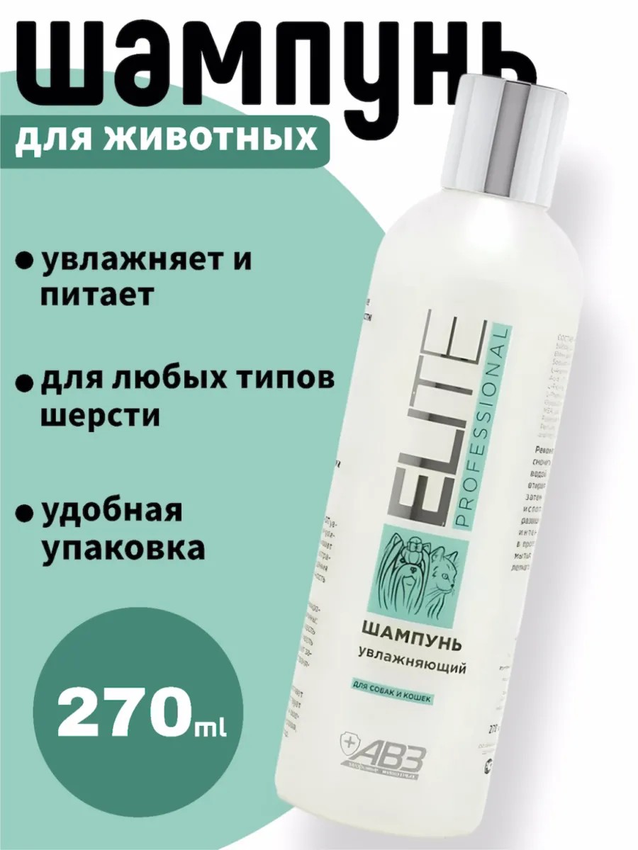 | Полное наименование товара | Elite Professional Шампунь увлажняющий для собак и кошек, 270 мл |