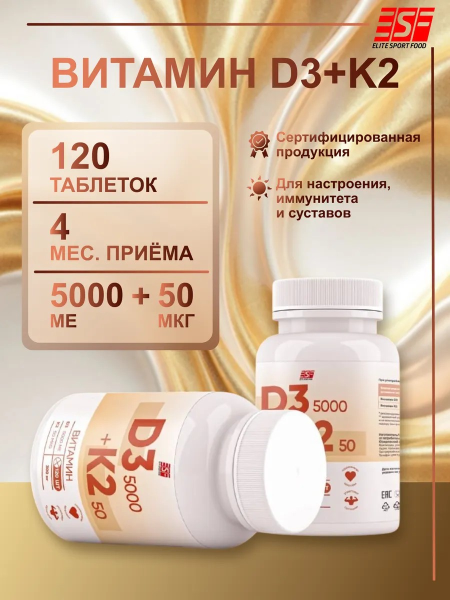 ELITE SPORT FOOD Витамин Д3 5000 МЕ К2 120 таблеток