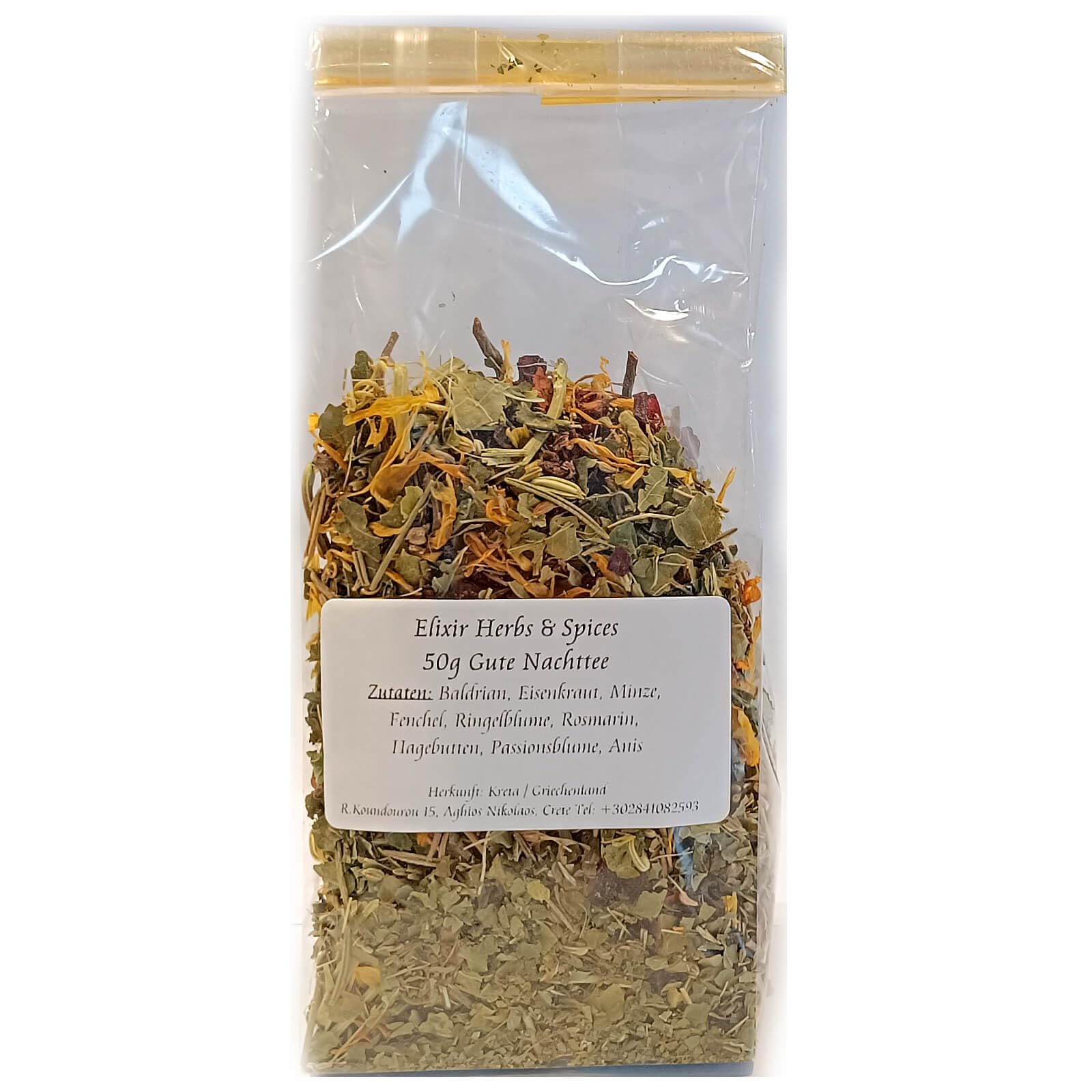 Elixir Herbs & Spices 50g of Greek goodnight tea with Cretan valerian rosemary verbena and passionflower elixir #302