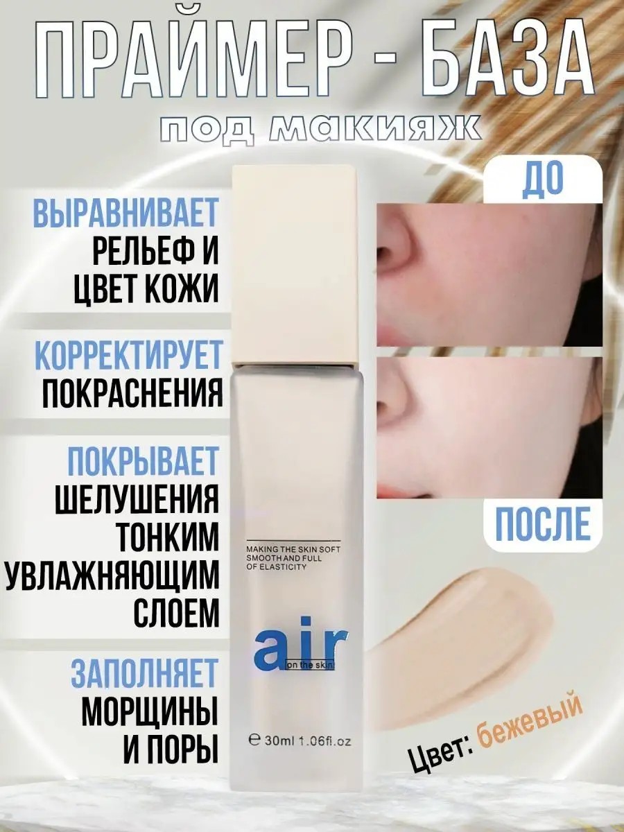Waterproof face primer and concealer. This base performs several important functions: it evens out skin texture and tone, corrects redness, covers flaking skin with a thin moisturizing layer, making it invisible, fills pores and wrinkles, reducing their visibility, and prolongs the wear of makeup. The face primer acts as a corrector, allowing you to apply foundation and cosmetics even more economically. The creamy texture and lightweight formula instantly brighten the skin and conceal hyperpigmentation without clogging pores. The result is soft, smooth skin that never looks sticky, evens out skin tone, and reduces dark circles under the eyes. Concealers are available in three variations: green, beige, and purple. Beige (natural) – the color of the foundation is designed to even out skin tone, give it a uniform appearance, and conceal minor imperfections. Green primer reduces skin redness. It can be used to conceal or make smaller pimples and spider veins less noticeable, and to hide redness after sunburn or tanning. A purple makeup primer can remove unhealthy yellowness from the face and camouflage a yellowed bruise. It minimizes visible fatigue and yellow tones on the skin. A makeup primer is a perfect gift for a girl/woman/girl on special occasions, such as birthdays, March 8th, and February 14th. The main function of a concealer is to moisturize the skin, smooth out fine lines and wrinkles, and even out the skin's texture. A makeup primer is an excellent product for a perfect makeup look!