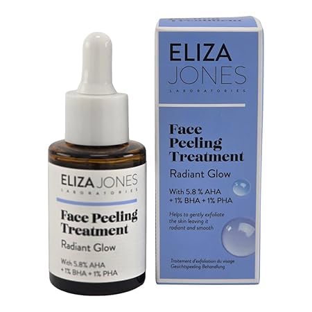 Eliza Jones - Exfoliant pour le visage - Traitement radiant brillant - Avec 5 8 % AHA + 1 % BHA + 1 % PHA - Traitement exfoliant pour le visage - 30 ml