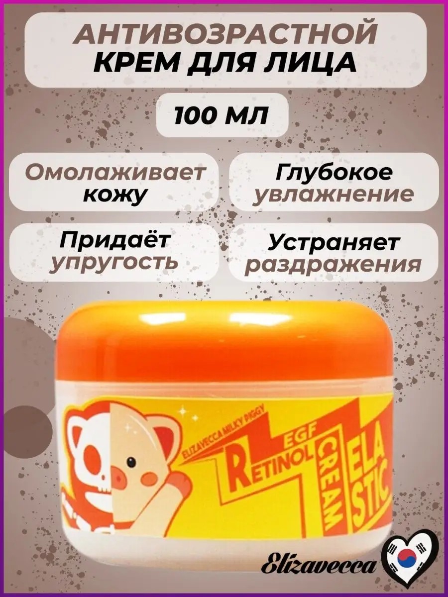 | Package contents | Face cream Korea. Nourishing cream. Night face cream.; Face cream Korea, Korean face cosmetics, Face moisturizing; Anti-aging face cream Korea; Nourishing face cream anti-aging care face cream Korea; Elizavecca Milky Piggy EGF Elastic Retinol Cream Anti-aging face cream |