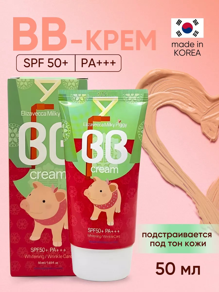Многофункциональный корейский тональный ВВ крем от елизавекка с SPF 50+/PA+++ Elizavecca Milky Piggy BB cream создает совершенное, но при этом естественное покрытие, маскируя несовершенства микрорельефа: покраснения, сосуды, пигментные пятна, прыщики.