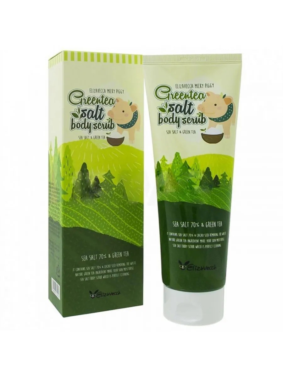 Elizavecca Greentea Salt Body Scrub with green tea extract cleanses the skin of dead cells and impurities, gently polishes and polishes the skin, makes it smooth, improves tone, and is also an excellent preventative for cellulite.