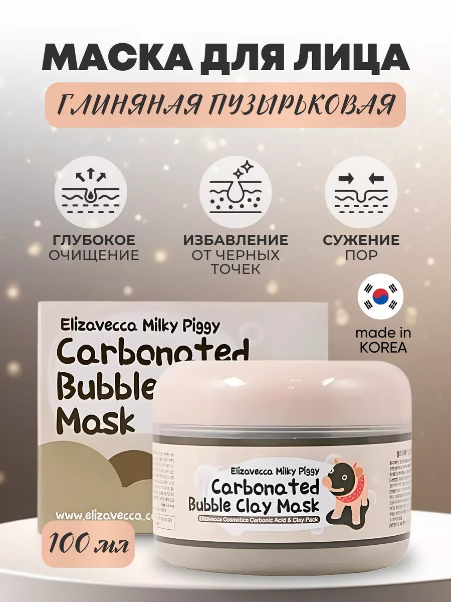 Маска для лица пузырьковая Elizavecca Milky Piggy Carbonated Bubble Clay Mask - идеальный способ глубокого очищения, восстановления кожи и борьбы с черными точками на лице: носу, на щеках, подбородке.