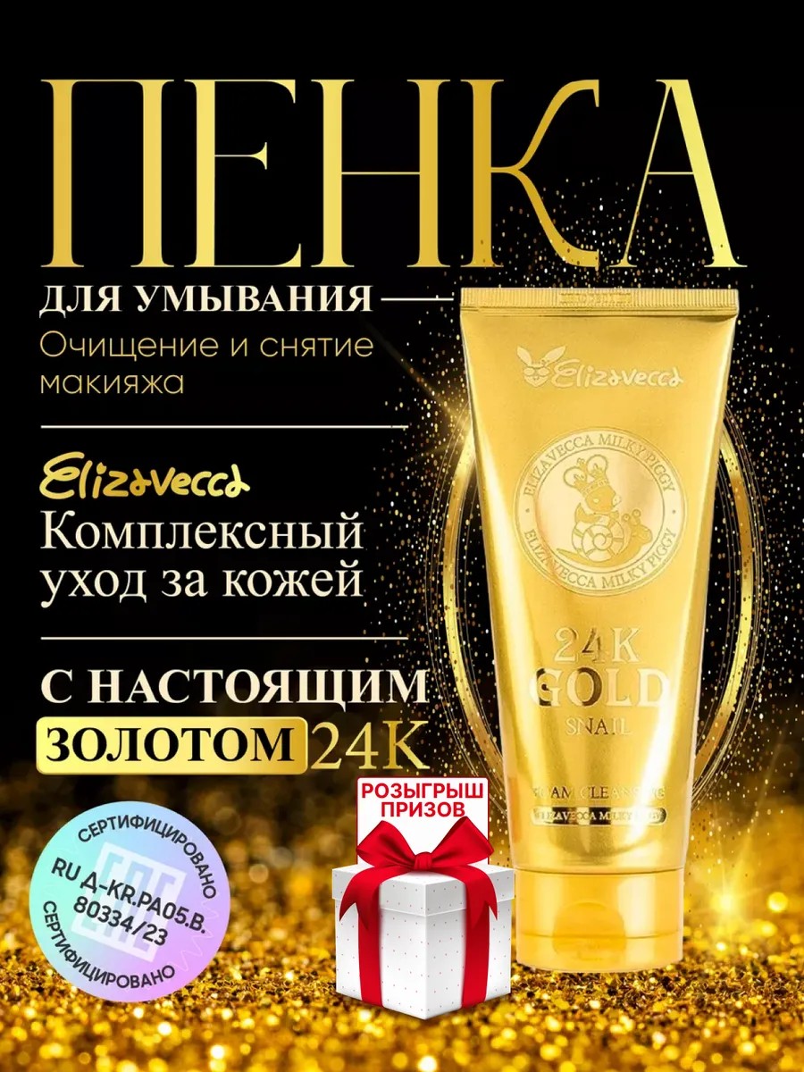 ELIZAVECCA Пенка для умывания Корея отличается от многих других средств для лица также и наличием золота в составе. Корейская косметика использует коллоидное золото как средством для дополнительной защиты, осветления и питания кожи, с его помощью лицо также более активно принимает другие полезные компоненты.