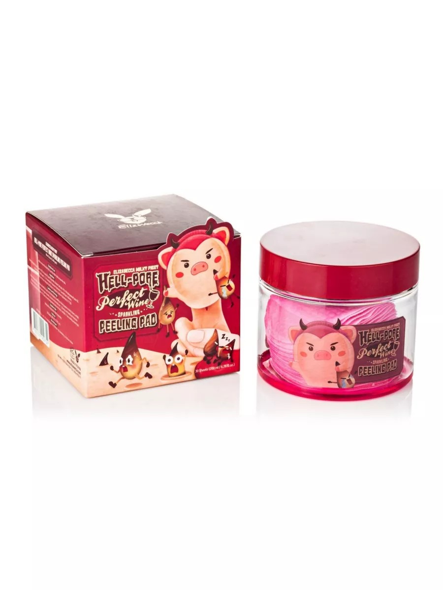 Elizavecca Hell-Pore Perfect Wine Sparkling Peeling Pad – очищающие винные пилинг-пады, предназначенные для эффективного очищения кожи. Частицы косметики или излишки кожного жира зачастую остаются на лице даже после интенсивного умывания, но только не у девушек, пользующихся пилинг-падами Елизавекка.