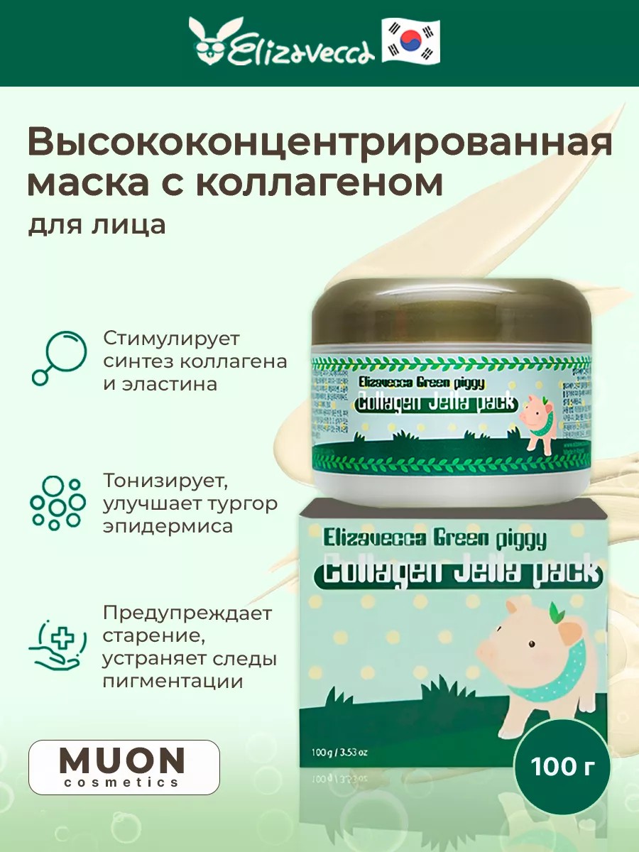 Маска для лица коллагеновая Elizavecca Green Piggy Collagen Jella Pack- обеспечивает мощный антивозрастной уход и глубокое омоложение кожи, активно увлажняет, улучшает внешний вид кожи и обогащает витаминами.Маска для лица разглаживает микрорельеф кожи и замедляет видимость возрастных изменений. Не содержит парабенов, искусственных красителей, минеральных и животного масел. Регулярное применение маски поможет уменьшить глубину и количество морщин, придать коже гладкость и упругость. Маска подходит совершенно для любого типа кожи, обладает мягким, расслабляющим ароматом. Средство глубоко увлажняет и питает кожу, препятствует шелушению и потере кожей влаги, надежно защищает от воздействия негативных факторов окружающей среды. До определенного возраста аденозин вырабатывается организмом в достаточном количестве, но со временем этого становится недостаточно, тогда на помощь приходит косметика, содержащая данное необходимое коже вещество. История бренда Elizavecca началась в 1986 году. Косметика делается в лучших традициях K-beauty и соответствует международным стандартам качества. Крема и маски производятся без вреда для окружающей среды. Отсутствие ГМО. В косметику не добавляют парабены, химикаты и прочие синтетические вещества, способные испортить кожу. Практичность. Все составы легко наносятся на кожу, смываются простой водой или совсем не требуют удаления.