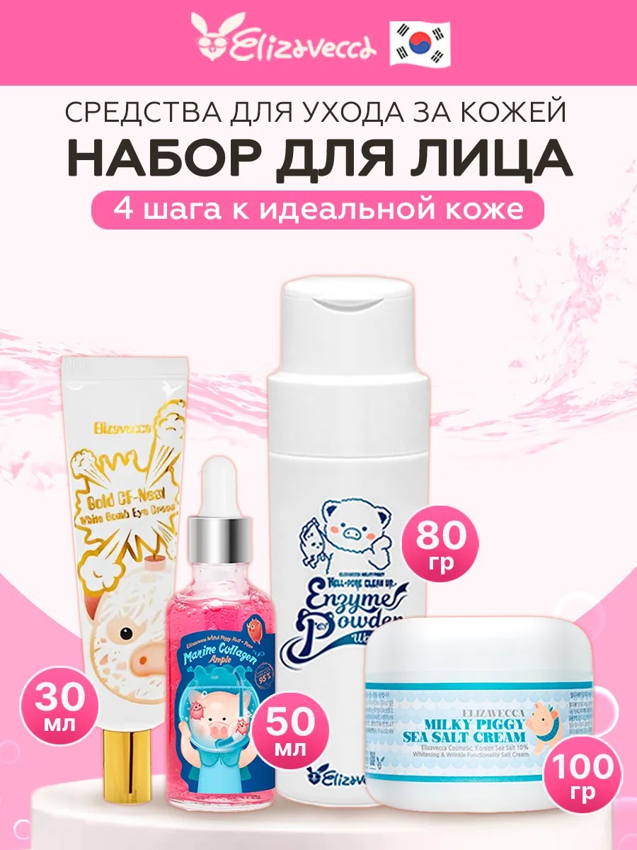 | Комплектация | Энзимная пудра Elizavecca, крем для глаз Elizavecca, сыворотка для лица Elizavecca, крем для лица Elizavecca |