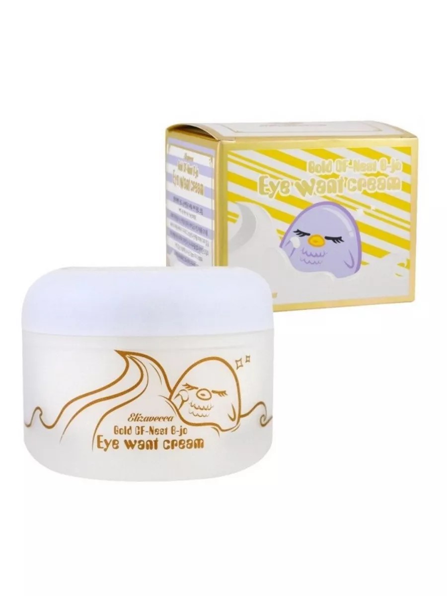 Elizavecca Gold Cf–Nest B–Jo Eye Want Cream – крем для глаз с экстрактом ласточкиного гнезда поможет быстро осветлить темные круги под глазами, разгладить “гусиные лапки”, сделать кожу более подтянутой и свежей.