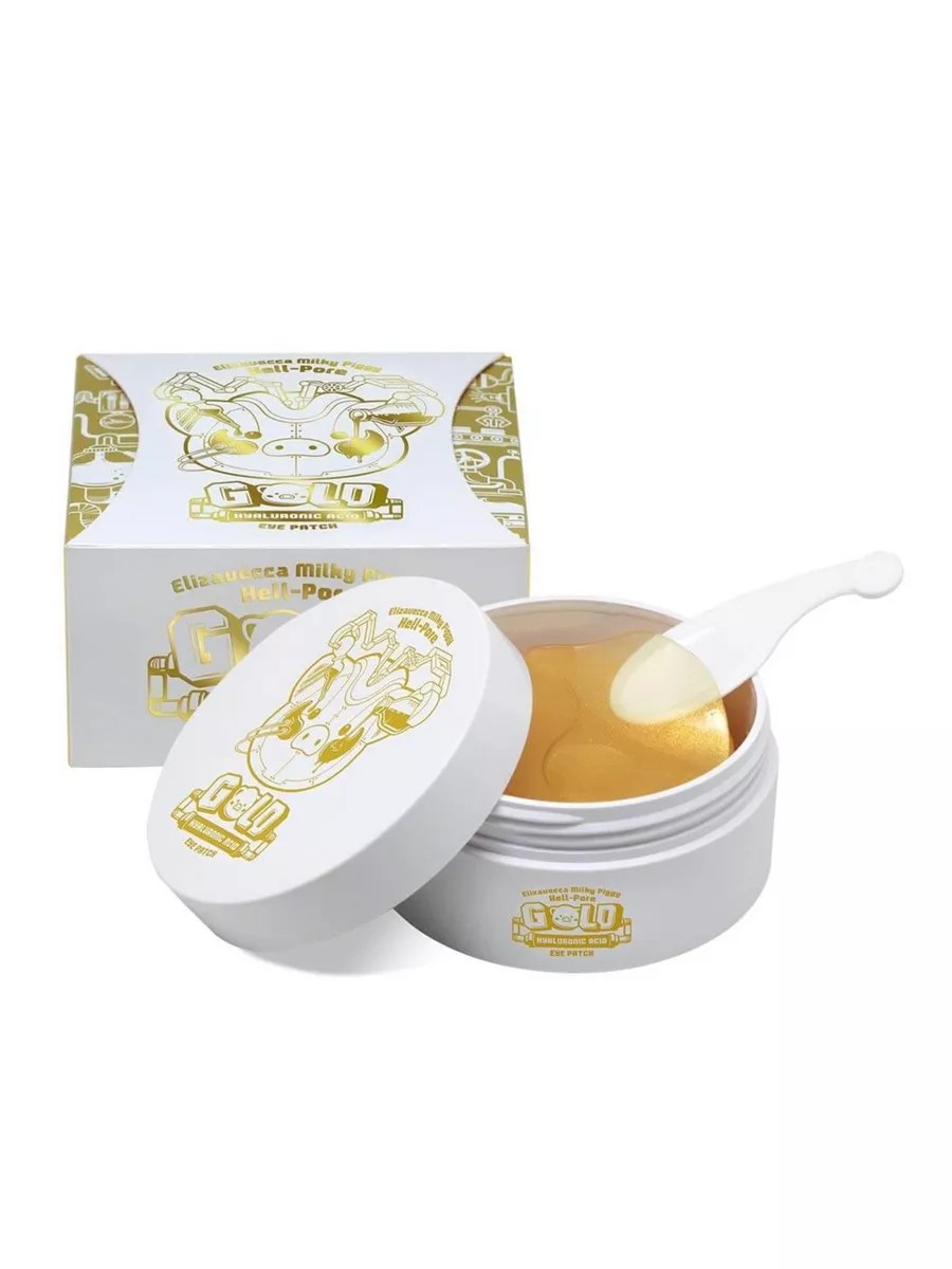 Elizavecca Milky Piggy Hell Pore Gold Hyaluronic Acid Eye Patch – moisturizing hydrogel patches with hyaluronic acid and gold.