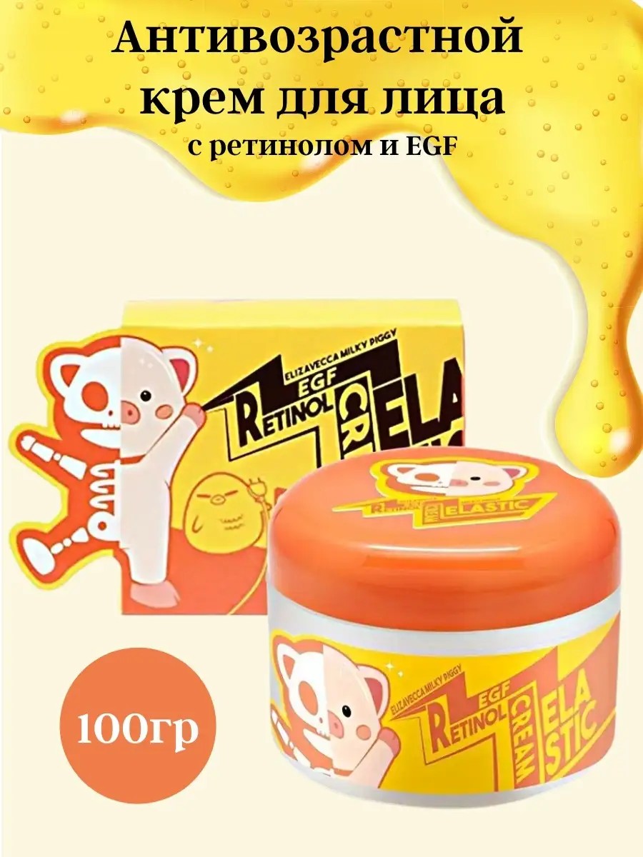 Крем для лица увлажняющий и тонизирующий с ретинолом и EGF Milky Piggy EGF elastic retinol cream Эффективно питает и увлажняет кожу, активизирует выработку коллагена, борется с морщинами и дряблостью кожи, а также заметно выравнивает тон и текстуру кожи, сужая расширенные поры и придавая здоровый и сияющий вид. Разглаживаются мелкие и заметно уменьшаются глубокие морщины, уменьшаются поры, осветляются пигментные пятна и кожа становится более свежей, здоровой и яркой. Способ применения: Наносить на кожу легкими массажными движениям до полного впитывания.