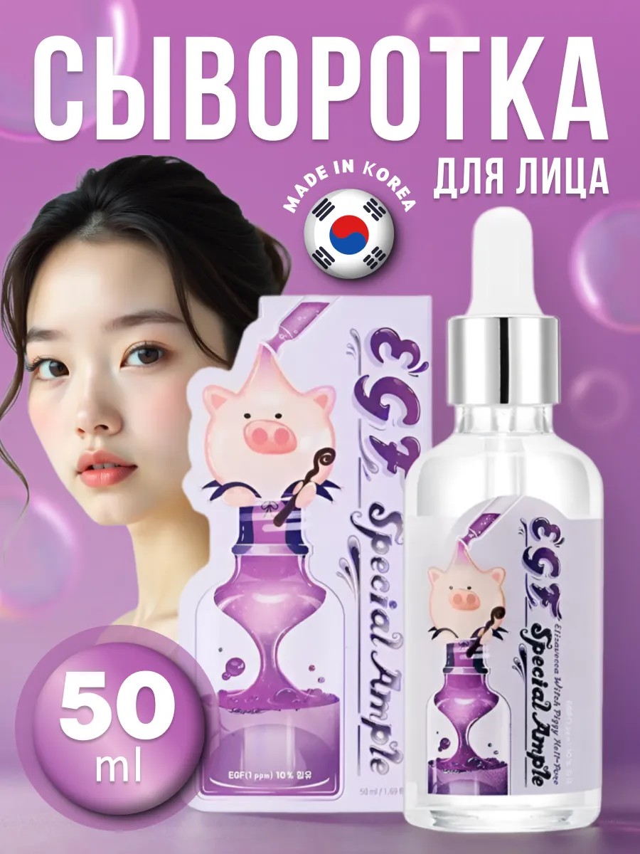 Сыворотка для лица увлажняющая Elizavecca Witch Piggy Hell-Pore EGF Special Ample - это сыворотка с эпидермальным фактором роста содержит ключевой компонент — EGF(фактор роста), который воздействует на клеточном уровне, стимулирует обновление клеток эпидермиса, ускоряет синтез коллагена и эластина, усиливает метаболизм клеток кожи.