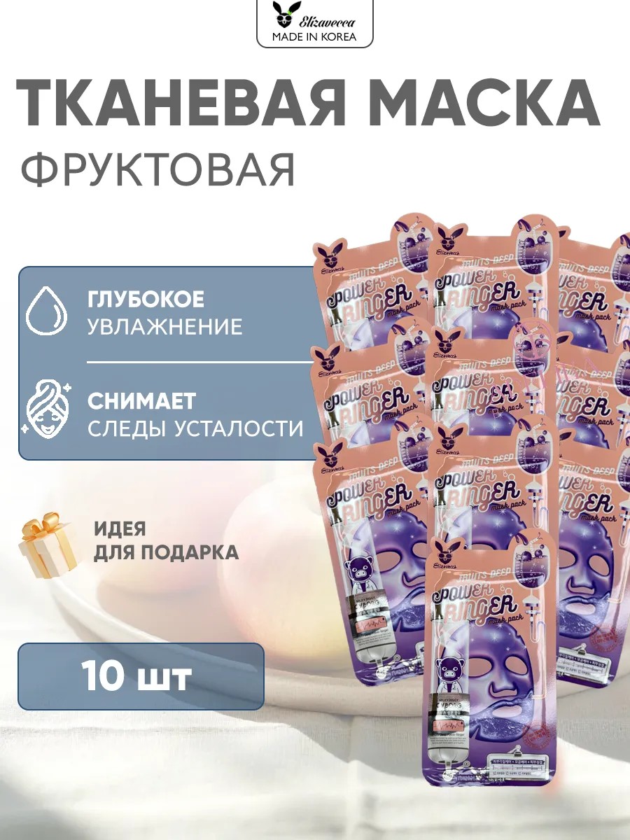 | Package contents | Elizavecca FRUITS DEEP POWER RINGER MASK PACK fabric face mask, 23 ml - 10 pcs; fabric masks - 10 pcs |