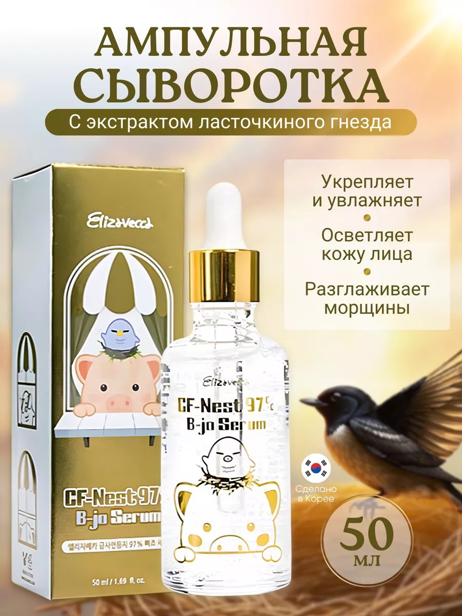 Elizavecca CF-Nest 97% B-jo Serum, a facial serum based on swallow's nest extract, from the leading Korean brand Elizavecca, will become your indispensable assistant in your daily skincare routine. This Korean cosmetic product is presented in a stylish transparent bottle with a pipette dispenser, ensuring convenience and economy of use.
