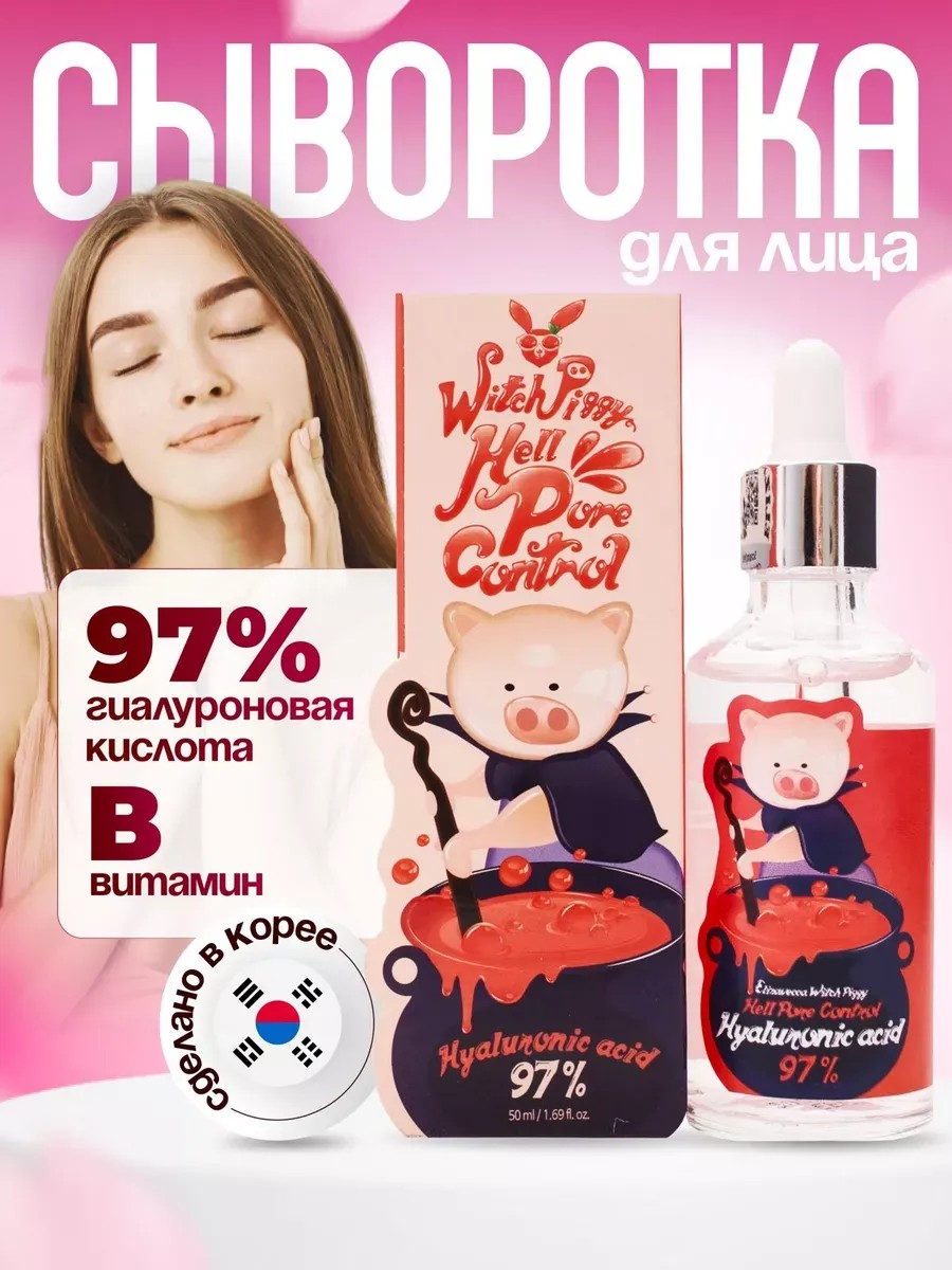 Elizavecca Hell-Pore Control Hyaluronic Acid 97% Moisturizing Facial Serum from Korea with Hyaluronic Acid – a facial serum based on 97% hyaluronic acid: it provides deep hydration, improves elasticity, and smoothes expression lines.