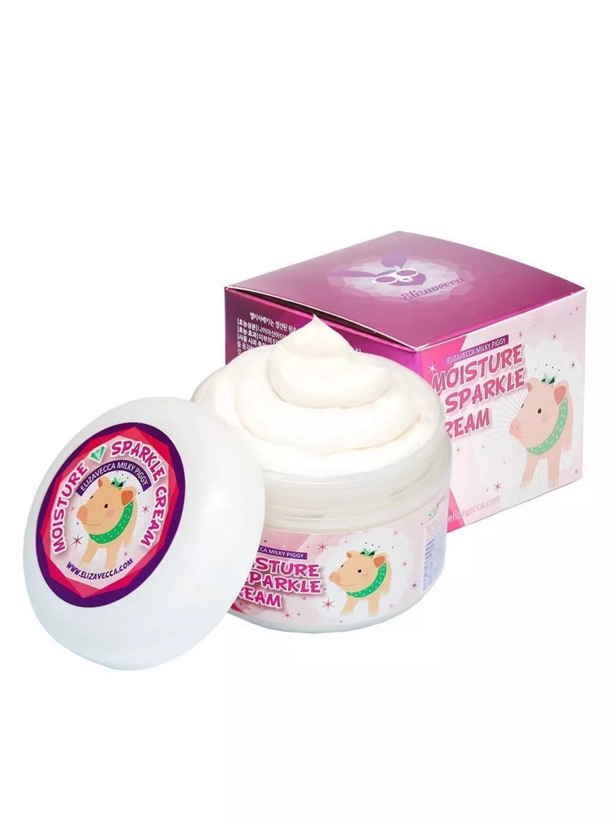 Elizavecca Moisture Sparkle Cream. Крем для ежедневного ухода за кожей лица Elizavecca Milky Piggy Moisture Sparkle Cream – глубоко увлажняет и дарит естественное сияние кожи. Эффект сияния достигается за счет входящей в состав алмазной пудры, она не только подсвечивает лицо, но и позволяет решать ряд возрастных проблем – гиперпигментация, морщинки, глубокие кожные заломы, истончившаяся дряблая кожа с дефицитом влаги.