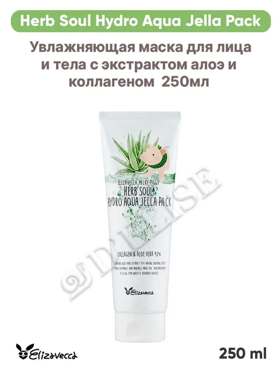 Contains a high concentration of aloe vera extract (92%) and hydrolyzed collagen, which effectively eliminates dry and dehydrated skin, soothes irritation, and reduces redness. KEY ACTIVE INGREDIENTS OF Elizavecca Milky Piggy Herb Soul: Green tea leaf extract – improves complexion, stimulates collagen production, and eliminates excess oiliness and redness. HOW TO USE Elizavecca Milky Piggy Herb Soul Hydro Aqua Jella Pack: FOR THE FACE: As a base and moisturizing treatment, apply a small amount of gel to dry, cleansed skin.