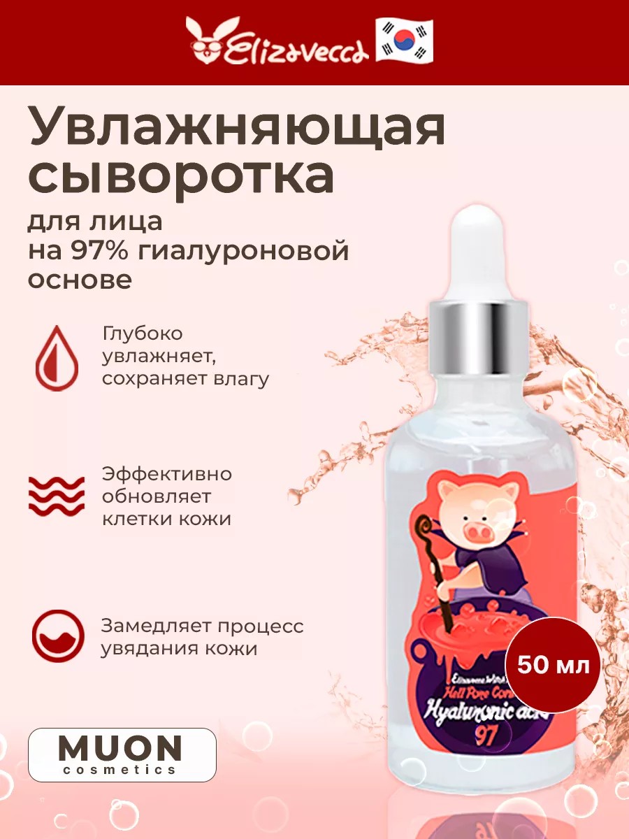 Elizavecca Hell-Pore Control Hyaluronic Acid 97% – сыворотка для лица на основе 97%-ной гиалуроновой кислоты. Это является эффективным средством для обновления кожи, улучшения микрорельефа, решения проблемы расширенных пор и тусклого цвета лица. Гиалуроновая кислота на поверхности кожи создает невидимую защитную пленку, которая способствует удержанию влаги, благодаря чему кожа увлажнена в течение долгого времени.Помимо увлажнения, улучшает тканевое дыхание и усиливает метаболизм клеток, ускоряет синтез коллагена и эластина, благодаря чему кожный покров остаётся упругим и подтянутым. Также средство ускоряет заживление различных кожных повреждений, в том числе воспалений после длительного пребывания на открытом солнце. Существенно увеличивает выработку коллагена и эластина, смягчает и подтягивает кожу. Восстанавливает ее после длительного воздействия ультрафиолетовых лучей, расслабляет лицевые мышцы – способствуя разглаживанию морщин. Оказывает противовоспалительное действие и успокаивает раздраженную кожу. Сыворотка для лица Elizavecca c гиалуроновой кислотой максимально эффективна для сухой, обезвоженной и зрелой кожи. Ежедневное использование позволяет добиться восхитительных результатов: выравнивается микрорельеф кожи, осветляются пигментные пятна, кожа выглядит свежей, обновленной и увлажненной. История бренда Elizavecca началась в 1986 году. Косметика делается в лучших традициях K-beauty и соответствует международным стандартам качества. Крема и маски производятся без вреда для окружающей среды. Отсутствие ГМО. В косметику не добавляют парабены, химикаты и прочие синтетические вещества, способные испортить кожу. Практичность. Все составы легко наносятся на кожу, смываются простой водой или совсем не требуют удаления.