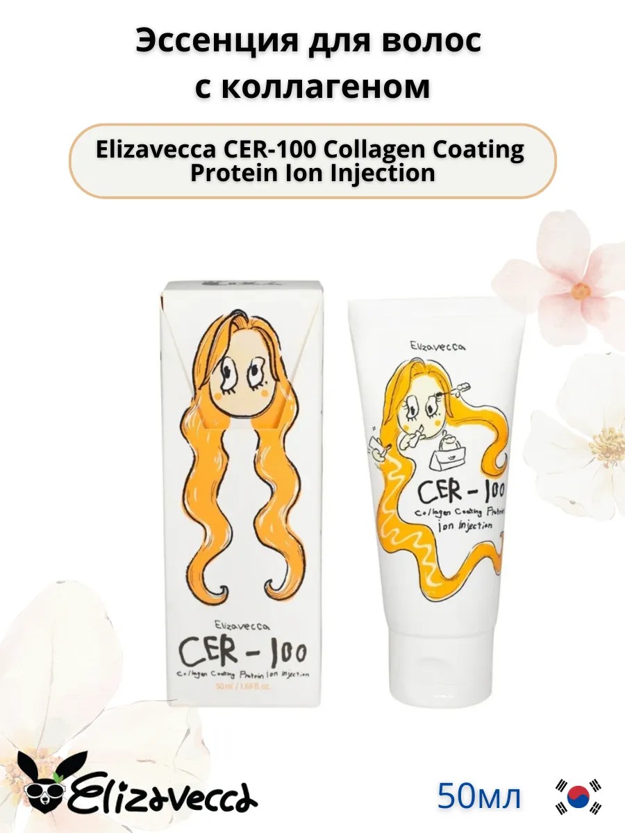 Elizavecca CER-100 Collagen Coating Protein Ion Injection Hair Essence is a leave-in treatment designed for intensive restoration of dry, damaged and color-treated hair.