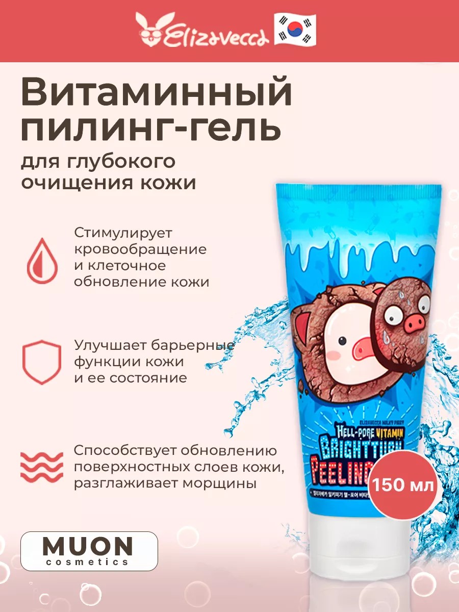 Очищающий пилинг-гель (скатка) для лица Корея Elizavecca Milky Piggy Hell Pore Vitamin Brightturn Peeling Gel интенсивно освобождает поры от загрязнений, продукции сальных желез, отшелушивает омертвевшие клетки эпидермиса, способствует выравниванию текстуры кожи и подготавливает её к последующим этапам ухода. Способствует увлажнению кожи. История бренда Elizavecca началась в 1986 году. Косметика делается в лучших традициях K-beauty и соответствует международным стандартам качества. Крема и маски производятся без вреда для окружающей среды. Отсутствие ГМО. В косметику не добавляют парабены, химикаты и прочие синтетические вещества, способные испортить кожу. Практичность. Все составы легко наносятся на кожу, смываются простой водой или совсем не требуют удаления.