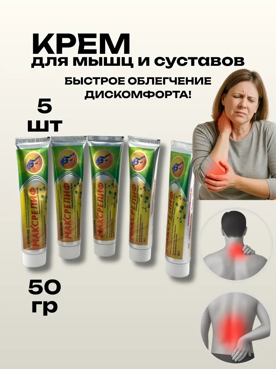 This helps maintain comfort and activity throughout the day. The compact 50g package is convenient for use at home and on the go, and the set of 5 tubes will always have a supply for regular use. This joint ointment for leg pain will be an indispensable aid for people leading an active lifestyle, athletes, and those who experience joint strain in their daily work. This pain-relieving cream helps quickly reduce discomfort and restore ease of movement. This pain-relieving joint cream helps reduce pain, relieve tension, and improve mobility, even during recovery from injuries or exacerbations of chronic diseases.
