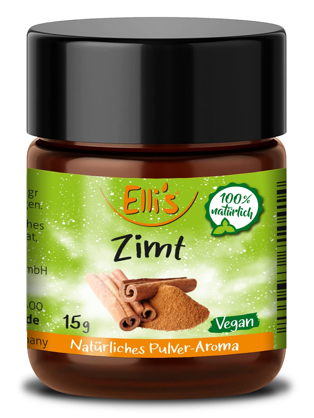 IFS Global Markets Food Certified Manufacturer: Ensured food safety and quality confirmed by TÜV Süd.The dosage of food aromas depends on the desired taste.We recommend a careful knife-tip dosage for everyday applications.For larger quantities, we recommend 1 - 2 grams of food aroma per kilogram to be produced.The dosage fluctuates due to the diversity offered between the different food aromas and must always be adapted individually and according to preferences.An overdose affects the taste considerably.Our food aromas must be placed directly in the food or drink to be flavored.The food or drink must be added to the food or drink such as honey, syrup, sweetener, milk, cream, fat or the like so that the food aroma can fully develop its taste.Our natural powder aromas can be used for all foods, such as for desserts, baked goods, smoothies, sauces, soups, cocktails, ice cream, sorbets, yoghurts, puddings, fruit sauces, jams and the like.Powder aromas are particularly suitable for dry baked goods, doughs, dry mixes and similar products.Our natural powder food aromas are very pure and productive - the flavorings come from 100 natural sources: no artificial sweetness, no dyes and low -calorie - the taste corresponds to the specification on the product image and title.IFS Globals Markets Food zertifizierter Hersteller: Gewährleistete Lebensmittelsicherheit und Qualität bestätigt durch den TÜV Süd. Die Dosierung von Lebensmittelaromen hängt vom gewünschten Geschmack ab. Für Alltagsanwendungen empfehlen wir eine bedachte Messerspitzen-Dosierung. Für größere Mengen empfehlen wir 1 - 2 Gramm Lebensmittelaroma pro Kilogramm zu erzeugenden Lebensmittel. Die Dosierung schwankt aufgrund der angebotenen Vielfalt zwischen den verschiedenen Lebensmittelaromen und muss immer individuell und nach Vorlieben angepasst werden. Eine Überdosierung beeinflusst den Geschmack erheblich. Unsere Lebensmittelaromen müssen direkt in das zu aromatisierende Lebensmittel oder Getränk gegeben werden. Dem Lebensmittel oder Getränk muss zwingend ein Geschmacksträger wie Honig, Sirup, Süßstoff, Milch, Sahne, Fett oder ähnliches zugefügt werden, damit das Lebensmittelaroma seinen Geschmack voll entfalten kann. Unsere natürlichen Pulveraromen können für alle Lebensmittel verwendet werden, wie für Desserts, Backwaren, Smoothies, Soßen, Suppen, Cocktails, Eiscreme, Sorbets, Joghurts, Puddings, Fruchtsoßen, Marmeladen und ähnliches. Pulveraromen eignen sich dazu besonders für trockene Backwaren, Teige, Trockenmischungen und ähnliche Produkte. Unsere natürlichen Pulver Lebensmittelaromen sind sehr rein und ergiebig – die Aromastoffe stammen zu 100 aus natürlichen Quellen: keine künstliche Süße, keine Farbstoffe und kalorienarm – der Geschmack entspricht der Angabe auf dem Produktbild und Titel.Ellis Aromen Zimt NATÜRLICHES PULVER Lebensmittelaroma Aromakonzentrat aus 100 Veganen und Natürlichen Ursprung für Lebensmittel und Getränke, wie zum Backen und Kochen 10 g