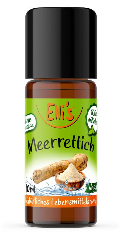 IFS Global Markets Food Certified Manufacturer: Ensured food safety and quality confirmed by TÜV Süd.The dosage of food aromas depends on the desired taste.We recommend a careful drip dosage for everyday applications.For larger quantities, we recommend 1 - 2 food aroma per kilogram to be produced.The dosage fluctuates due to the diversity offered between the different food aromas and must always be adapted individually and according to preferences.An overdose affects the taste considerably.Our natural food aromas must be placed directly into the food or drink to be flavored.The food or drink must be added to the food or drink such as honey, syrup, sweetener, milk, cream, fat or the like so that the food aroma can fully develop its taste.Our food aromas are not suitable for use in liquids.Our natural food aromas can be used for all foods, such as for desserts, baked goods, smoothies, sauces, soups, cocktails, ice cream, sorbets, yoghurts, pudings, fruit sauces, jams and the like.Our natural food aromas are very pure and productive - the aroma substances come from 100 natural sources: no artificial sweetness, no dyes and low -calorie - the taste corresponds to the specification on the product image and title.IFS Globals Markets Food zertifizierter Hersteller: Gewährleistete Lebensmittelsicherheit und Qualität bestätigt durch den TÜV Süd. Die Dosierung von Lebensmittelaromen hängt vom gewünschten Geschmack ab. Für Alltagsanwendungen empfehlen wir eine bedachte Tropf-Dosierung. Für größere Mengen empfehlen wir 1 - 2 Lebensmittelaroma pro Kilogramm zu erzeugenden Lebensmittel. Die Dosierung schwankt aufgrund der angebotenen Vielfalt zwischen den verschiedenen Lebensmittelaromen und muss immer individuell und nach Vorlieben angepasst werden. Eine Überdosierung beeinflusst den Geschmack erheblich. Unsere Natürlichen Lebensmittelaromen müssen direkt in das zu aromatisierende Lebensmittel oder Getränk gegeben werden. Dem Lebensmittel oder Getränk muss zwingend ein Geschmacksträger wie Honig, Sirup, Süßstoff, Milch, Sahne, Fett oder ähnliches zugefügt werden, damit das Lebensmittelaroma seinen Geschmack voll entfalten kann. Unsere Lebensmittelaromen sind nicht für die Verwendung in Liquids geeignet. Unsere Natürlichen Lebensmittelaromen können für alle Lebensmittel verwendet werden, wie für Desserts, Backwaren, Smoothies, Soßen, Suppen, Cocktails, Eiscreme, Sorbets, Joghurts, Puddings, Fruchtsoßen, Marmeladen und ähnliches. Unsere Natürlichen Lebensmittelaromen sind sehr rein und ergiebig – die Aromastoffe stammen zu 100 aus natürlichen Quellen: keine künstliche Süße, keine Farbstoffe und kalorienarm – der Geschmack entspricht der Angabe auf dem Produktbild und Titel.Ellis Aromen Meerrettich NATÜRLICHES Lebensmittelaroma Aromakonzentrat aus 100 Veganen und Natürlichen Ursprung Für Speisen Getränke 10 ml