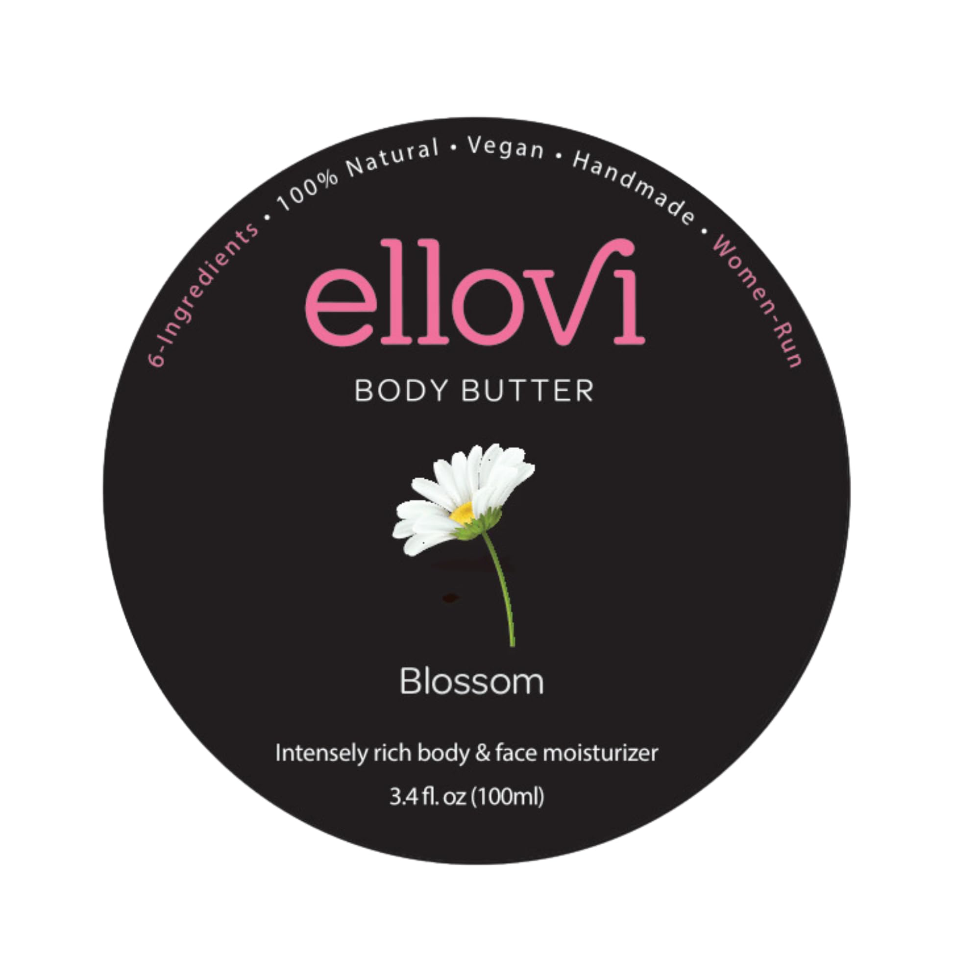 Ellovi All-Natural Body Butter - Blossom - Pure Enough to Eat - Made With Just 6 Vegan Ingredients - Ultra-Rich 100% Plant-Based Hydrating Moisturizer For Naturally Healthy Skin (3.4 fl. oz/100ml) 3.4 Ounce (Pack of 1) Blos