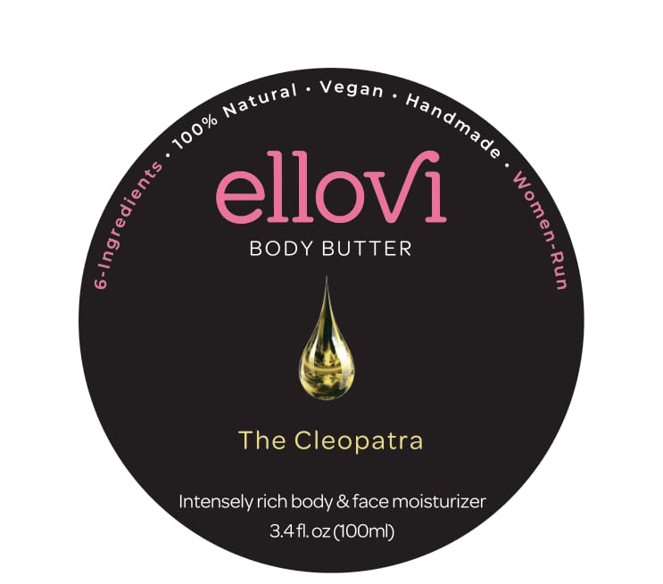 Ellovi All-Natural Body Butter - The Cleopatra - Pure Enough to Eat - Made With Just 6 Vegan Ingredients - Ultra-Rich 100% Plant-Based Moisturizer For Naturally Healthy Skin (3.4 fl. oz/100ml) 3.4 Fl Oz (Pack of 1) The Cleo