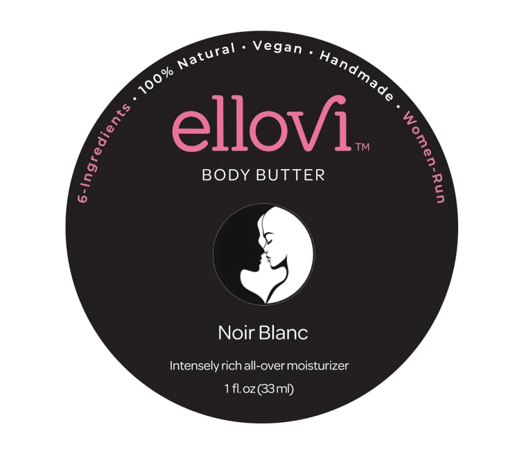 Ellovi All-Natural Unisex Body Butter - Noir Blanc - Pure Enough to Eat - Made With Just 6 Vegan Ingredients - 100% Plant-Based Hydrating Moisturizer For Naturally Healthy Skin (1 fl. oz/33ml)