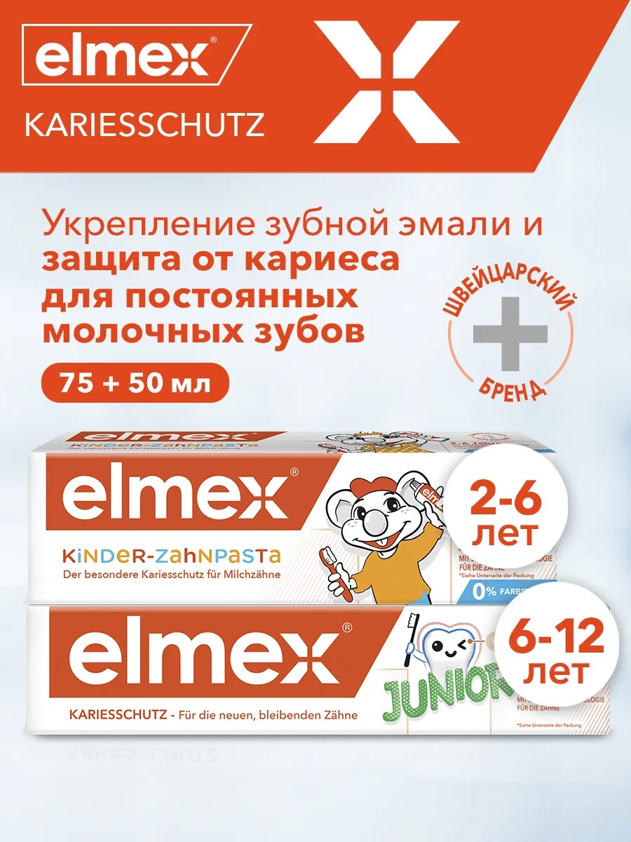 Зубная паста Elmex Junior специально предназначена для ежедневной гигиены полости рта детей в возрасте от 6 лет до 12 лет с целью обеспечения длительной защиты от кариеса, снижения деминерализации эмали и ее укрепления.