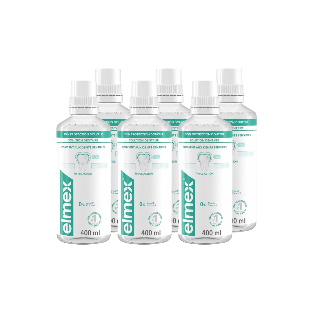 ELMEX - Bain de bouche Soin Protection Douceur - Triple action pour dents sensibles et protection caries - Sans alcool - Go t menthe - 400ml - Lot de 6