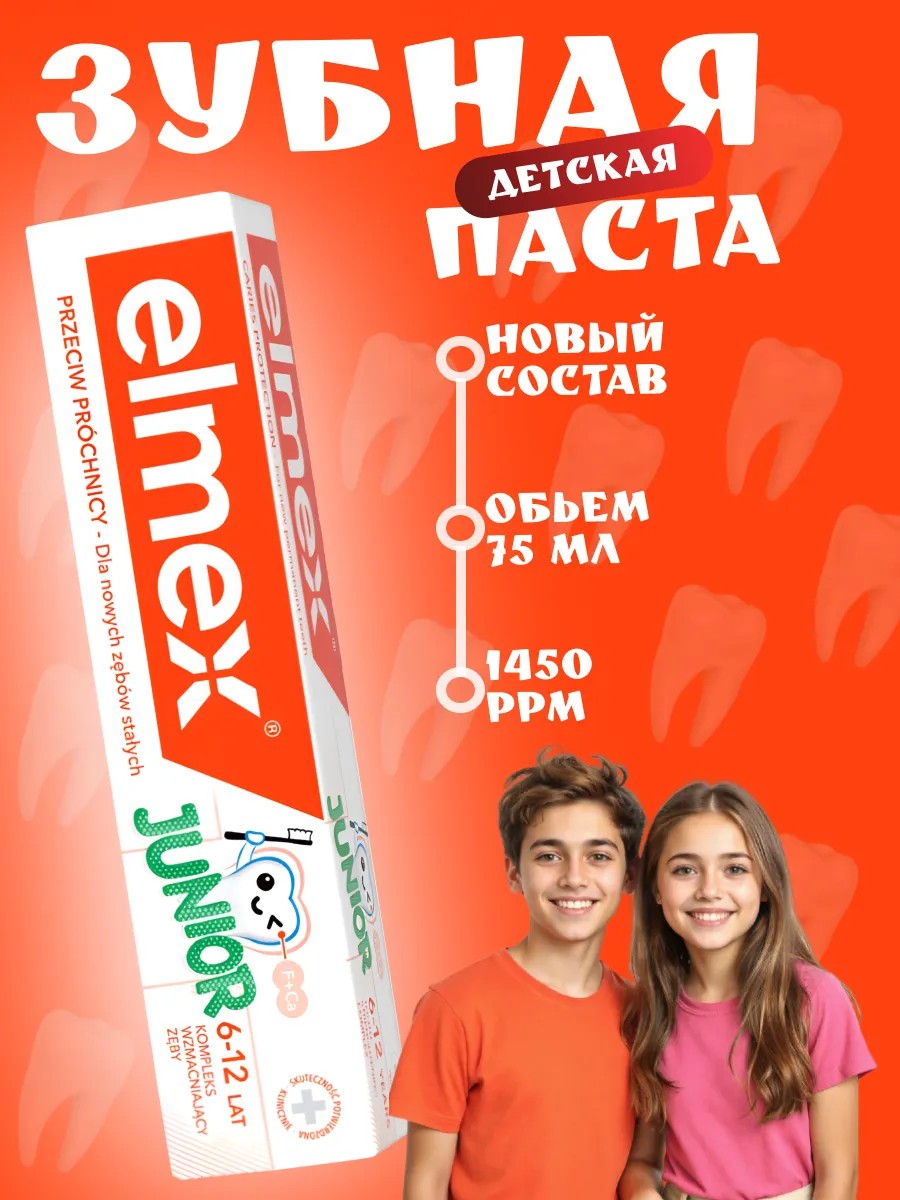 elmex Детская зубная паста 6-12 лет Junior, 75 мл