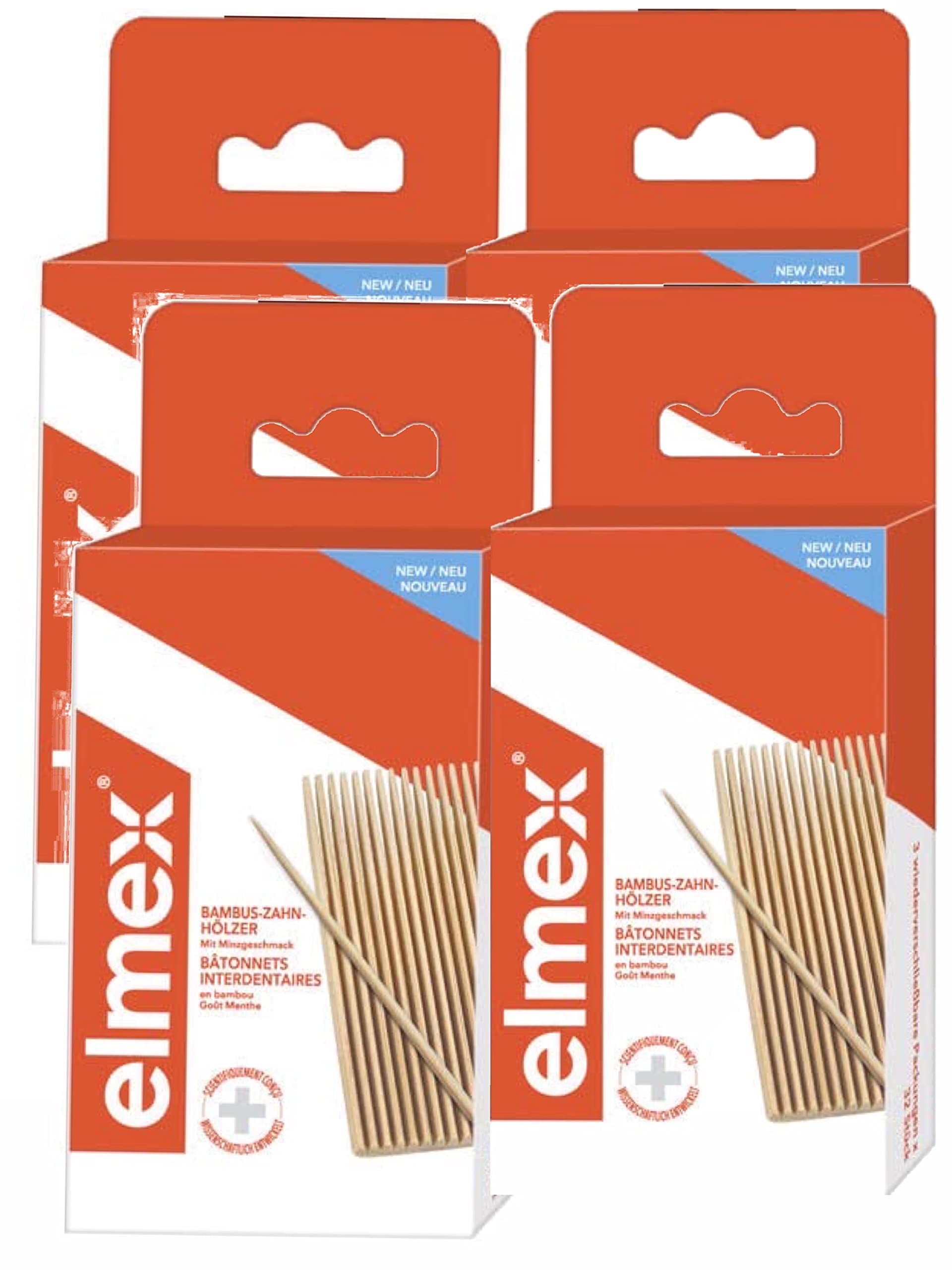 ELMEX Interdental Sticks - Remove Plaque - Box of 32 Bamboo Interdental Sticks - Resealable Bags - Pack of 4 Boxes of 32 Stic