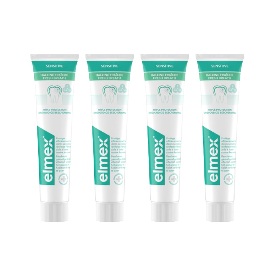 ELMEX - Pâte Dentifrice Elmex Sensitive Haleine Fraîche 0 Colorants - Dents Sensibles, Gencives Douloureuses, Protection de l'Email - 4 x 75 ml