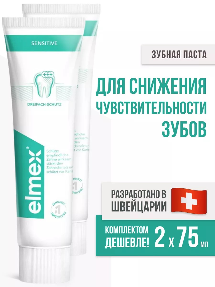 elmex Зубная паста для чувствительных зубов Sensitive, 2 шт, 75 мл