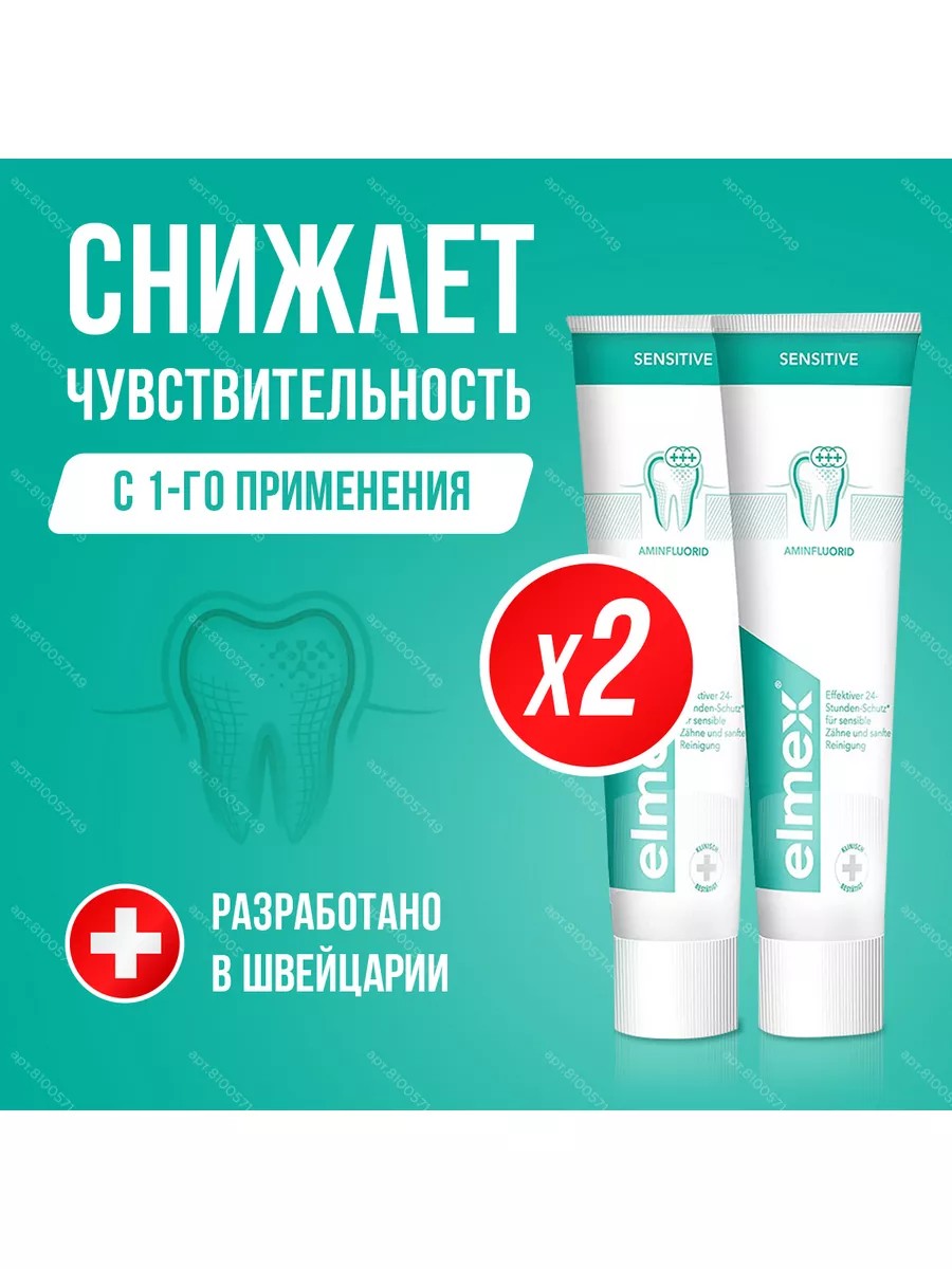 Package contents2 tubes of Elmex Sensitive toothpaste, 75 ml each.